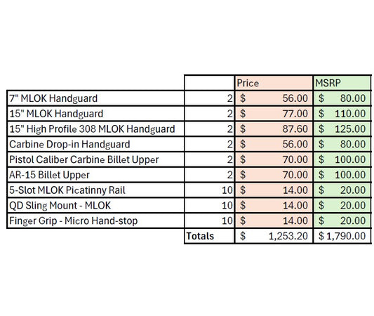 OEM MLOK Handguard - 100% USA Made - 4", 7", 9.25", 12", 15"